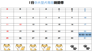 1月のドッグラン中大型犬専用時間帯のお知らせです!